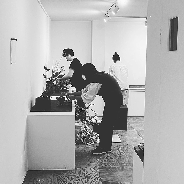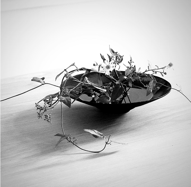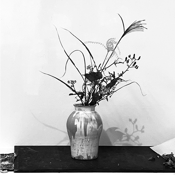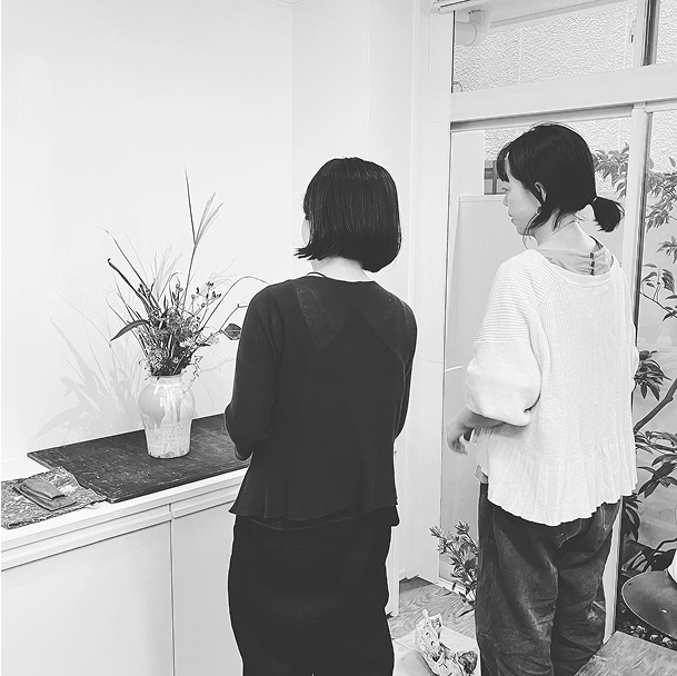 草花で季節の風景を立ち昇らせる「なげいれ」のお稽古をうつわクウの花器を用いて行いました